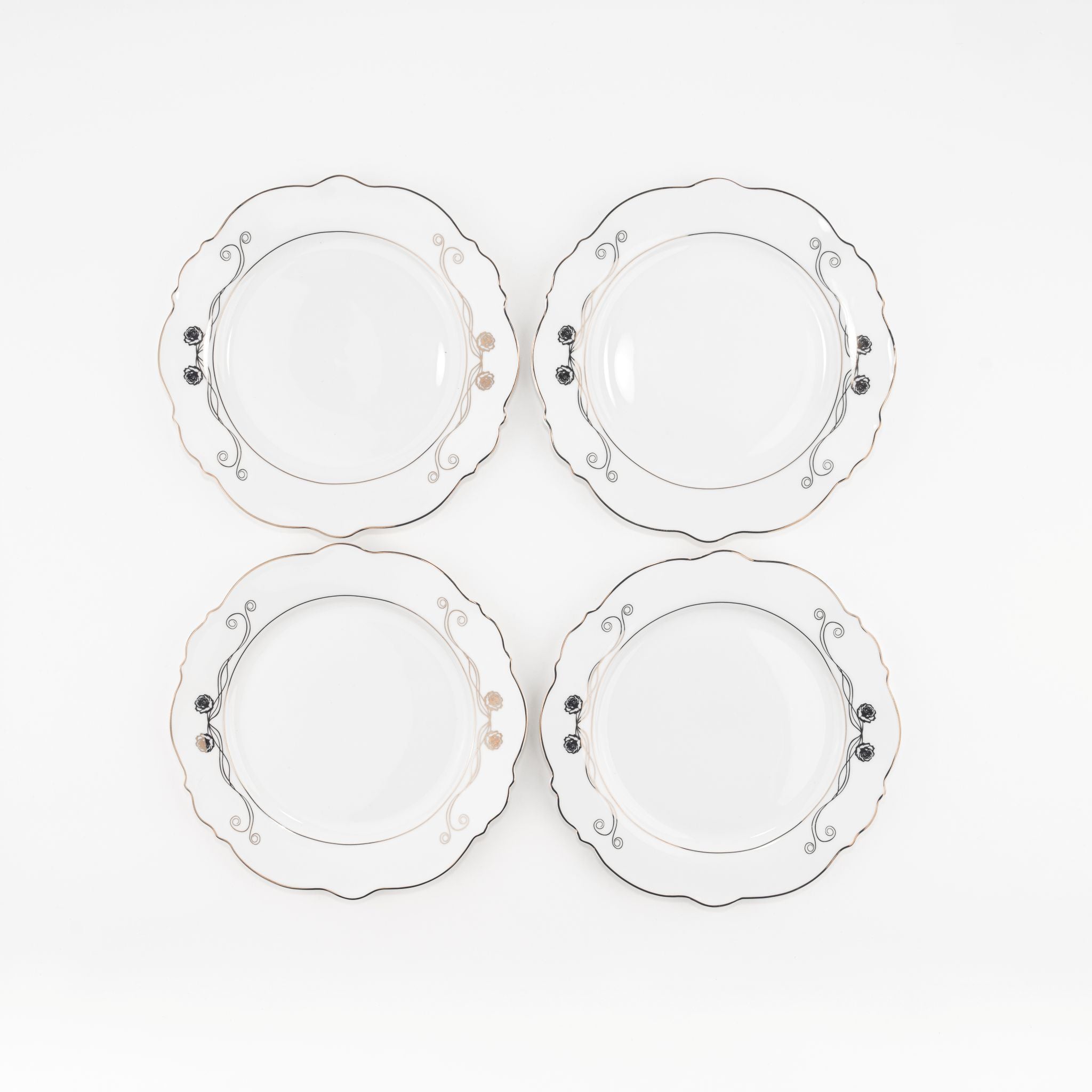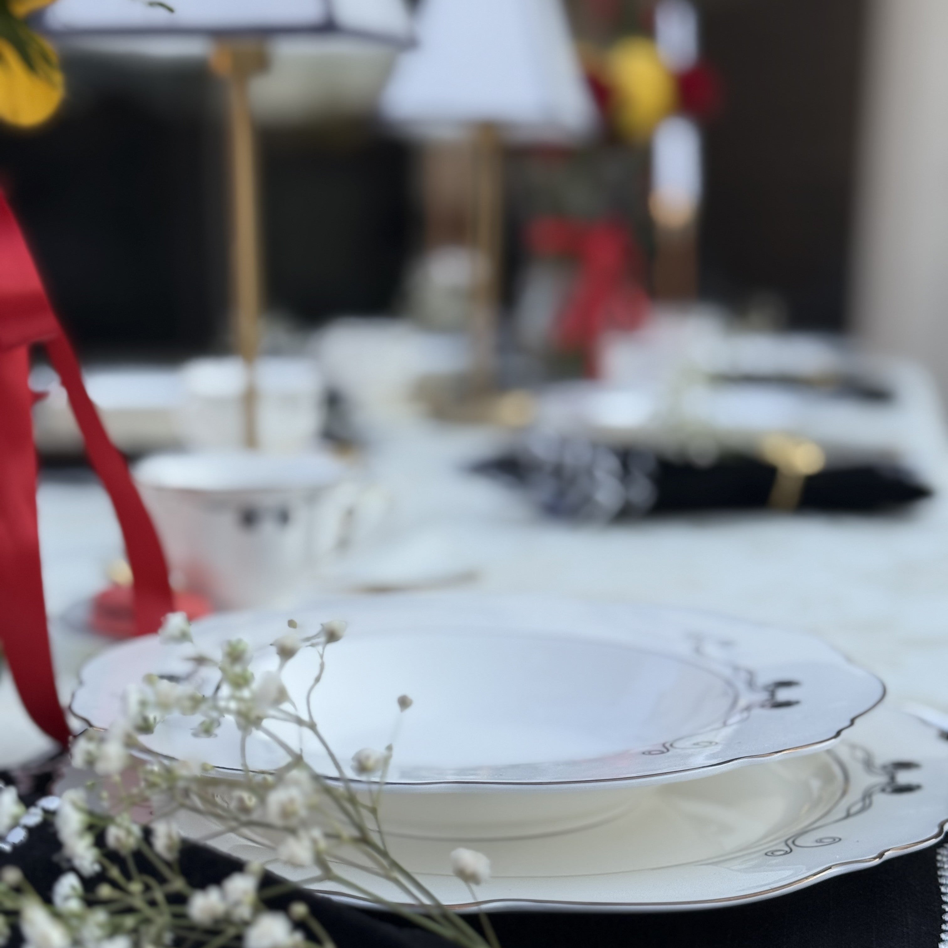 Evermore salad plates bring refined beauty to lighter courses and thoughtfully layered tables. Crafted in fine bone china with subtle gold accents, they add an elegant touch to every setting.