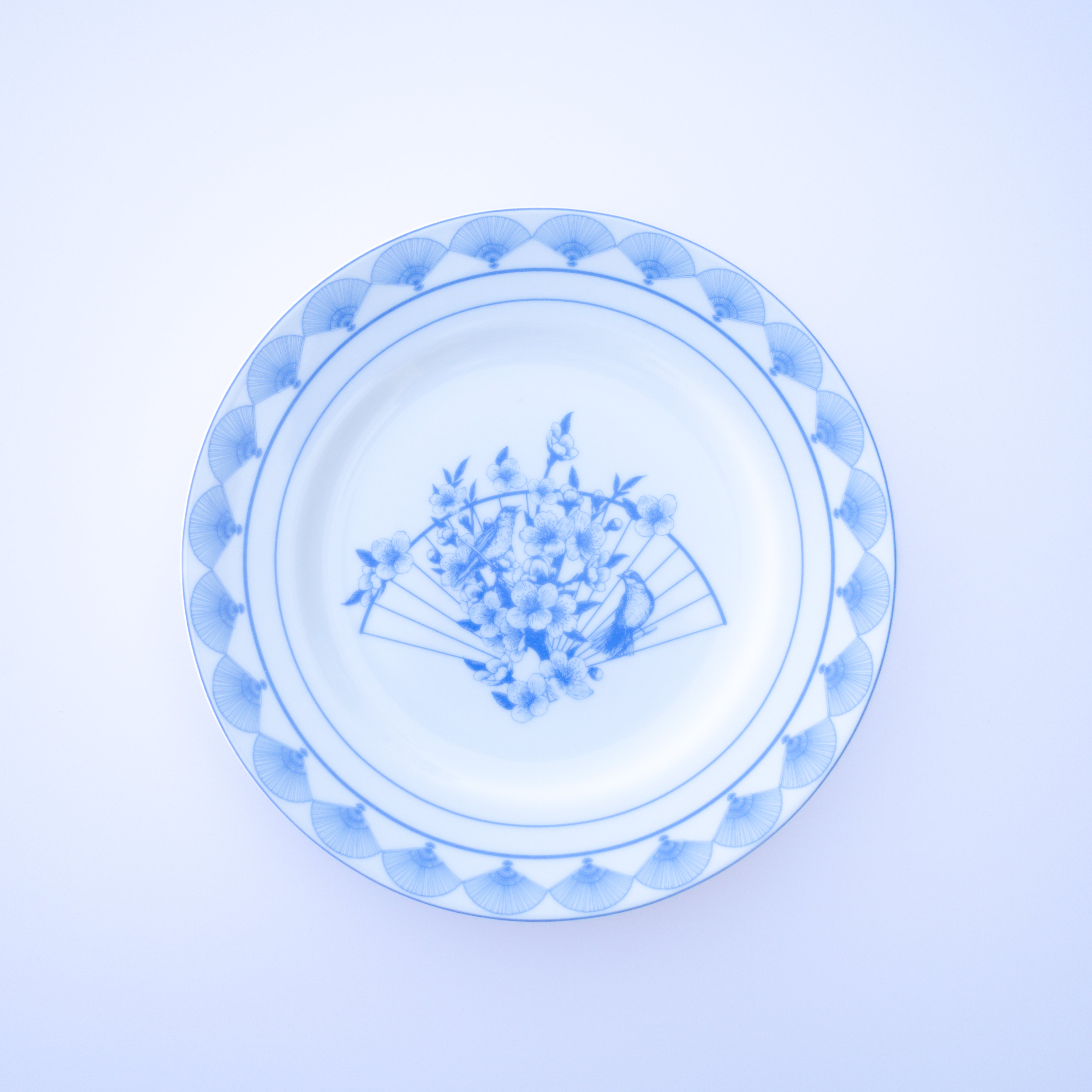 Blue Nightingale is a refined 12-piece dinnerware set designed to bring timeless elegance to the table. Delicate blue florals and a graceful bird motif are framed by intricate fan detailing, creating a setting that feels both classic and quietly beautiful.