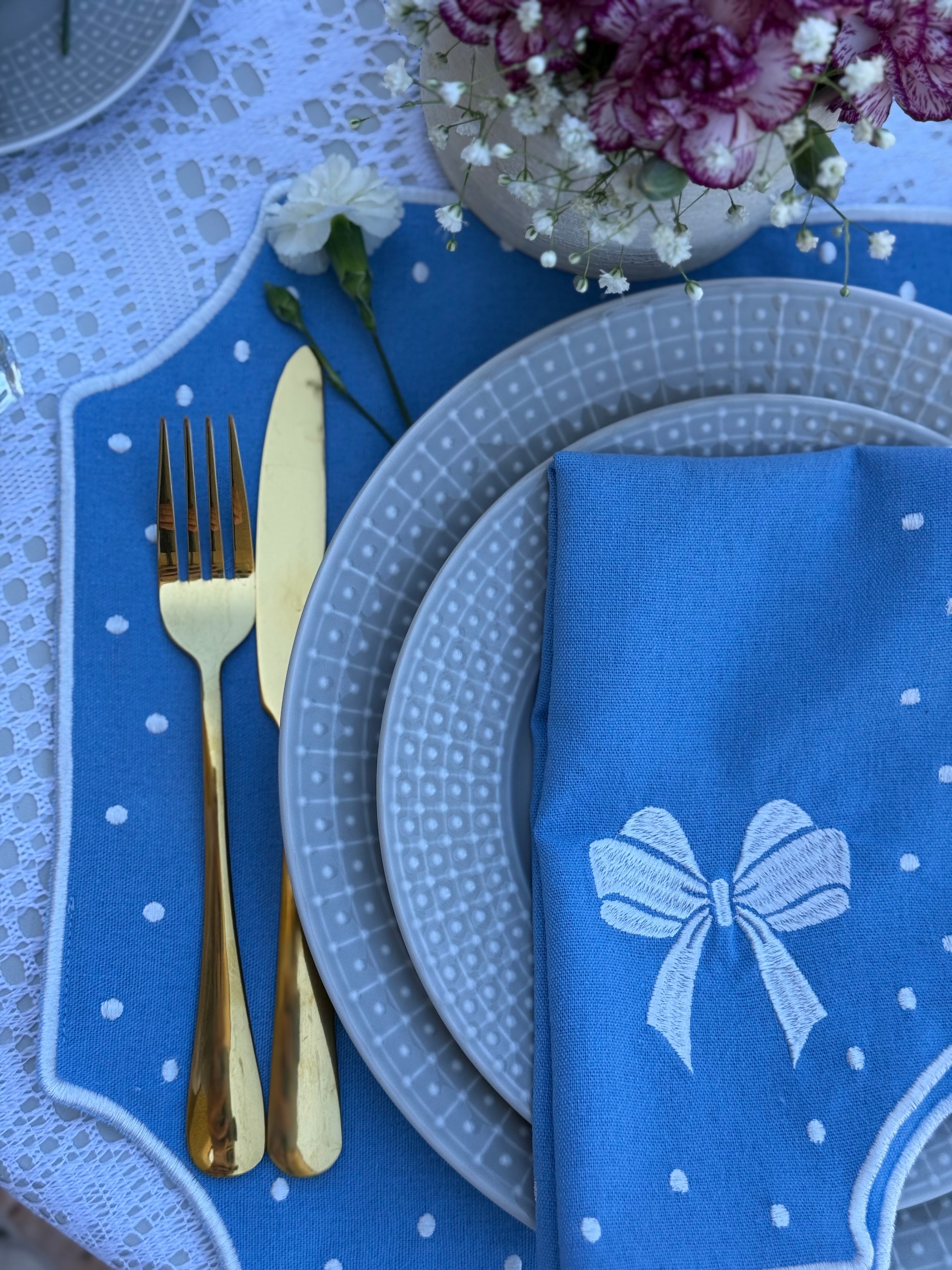 Darling Blue placemats are designed to bring lightness and charm to the table. Their soft blue tone frames each place setting with warmth, creating a relaxed yet thoughtfully styled dining experience.